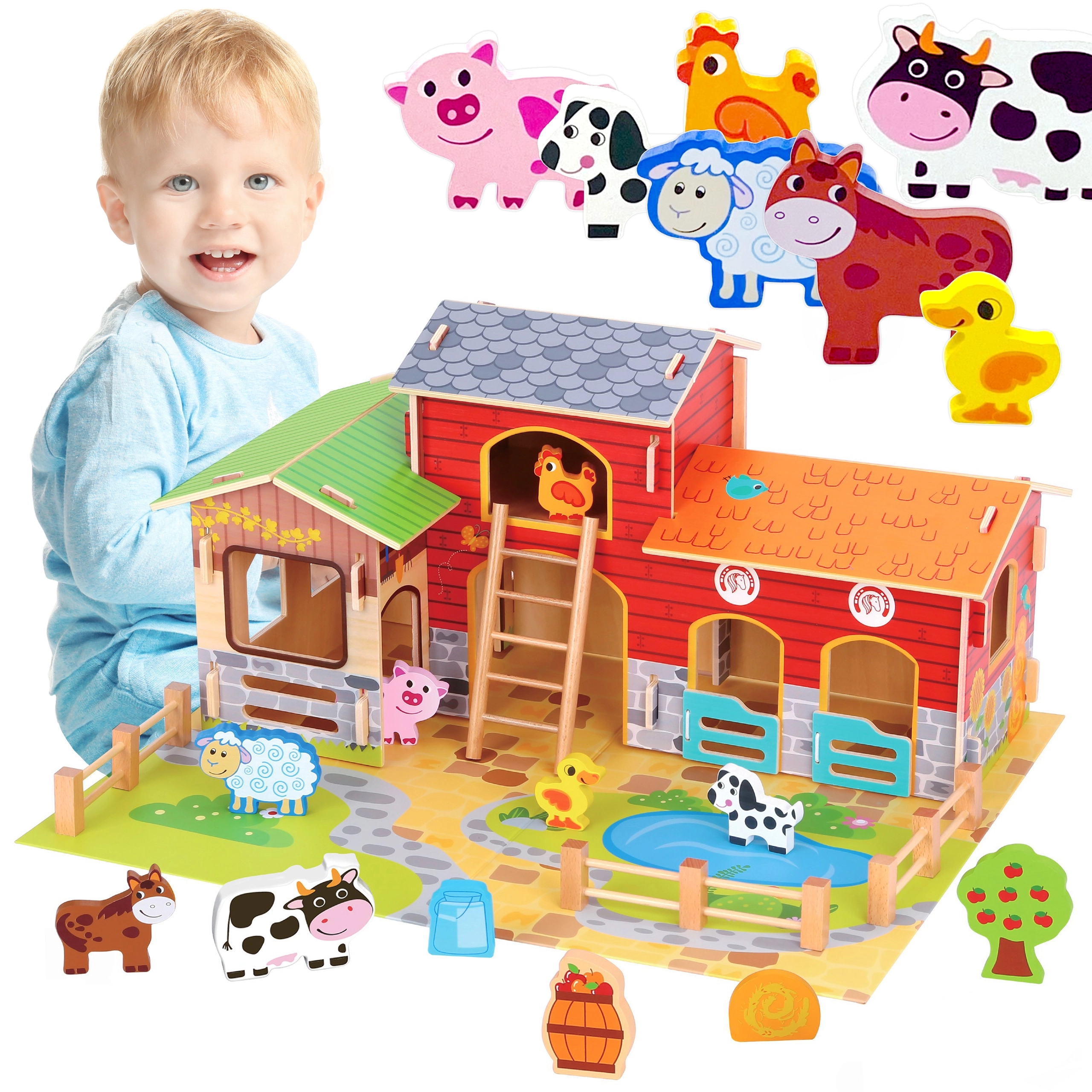 Medinė mega ferma WOOPIE GREEN – tvartas, daržinė ir vištidė, 18 dalių