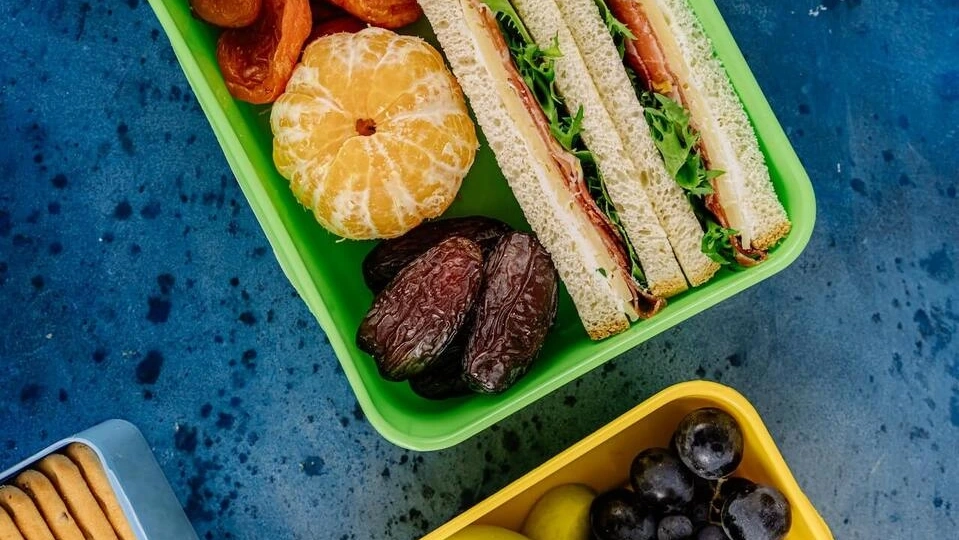 - Užkandžiai turėtų būti lengvai nešami ir greitai paruošiami. Populiarūs pasirinkimai: pjaustyti vaisiai, daržovių lazdelės su humusu, sūrio riekelės arba pilno grūdo duona su užtepėle.