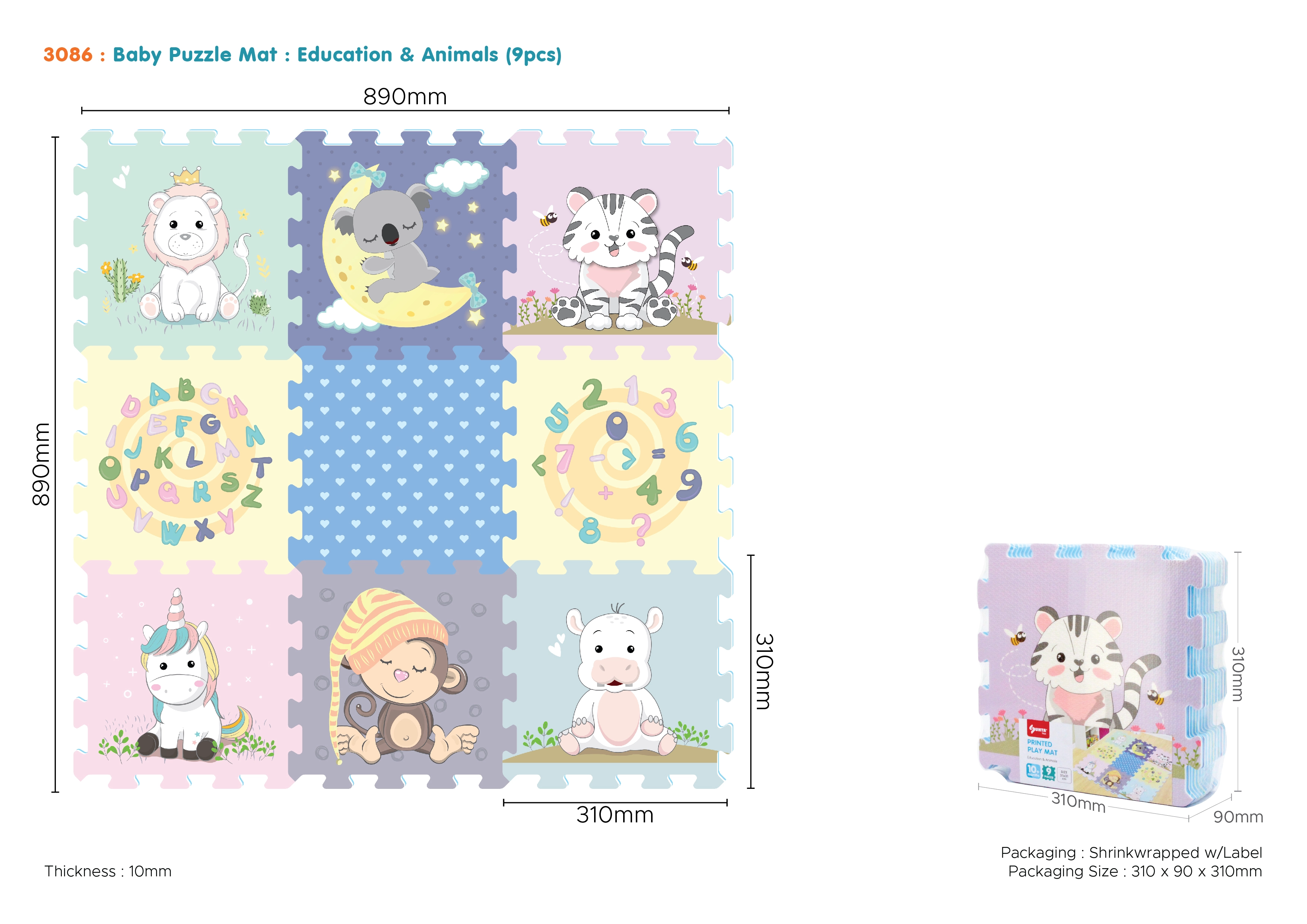 Paverskite vaikų kambarį spalvinga žaidimų karalyste: putų dėlionės vaikams pavers grindis minkšta, saugia ir neslystančia žaidimų zona. EVA putplasčio grindų dėlionės dalys lengvai susideda į įvairias formas, o per akimirką iš jų sukursite patogų dėlionių kilimą ar didelę vaikišką putų paklotą. Ši vaikiška putų dėlionė ant grindų su skaičiais, raidėmis ir paveikslėliais skatina kūrybišką žaidimą nuo pirmųjų žingsnių.