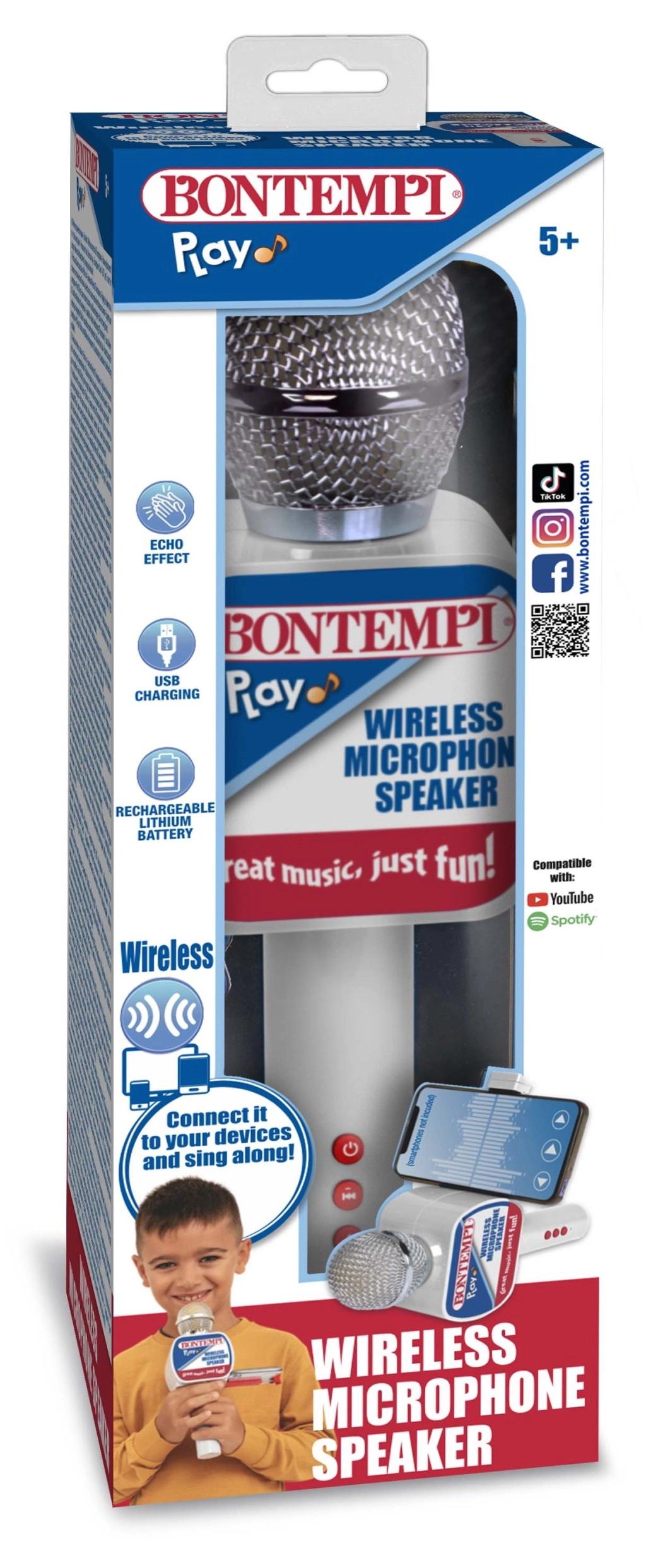 Galite rinktis iš tokių modelių kaip mikrofonas su integruotu garsiakalbiu, belaidis karaoke mikrofonas su „Bluetooth“, mikrofonas su stovu ar įrašymo mikrofonas vaikams. Daugelis vaikiškų mikrofonų turi aido efektą, LED šviesos efektus, balso keitimą, garso reguliavimą, AUX/USB/microSD jungtis ir įkraunamą bateriją. Ergonomiška konstrukcija ir nedidelis svoris užtikrina paprastą valdymą, kokybišką garsą ir saugius medžiagų sprendimus, tinkamus vaikų rankoms. Vaikiški mikrofonai idealiai tinka vaikų karaoke, namų studijai, mokykliniams koncertams, šventėms ir kasdieniam dainavimui. Pagal amžių ir įgūdžius rinkitės paprastą vaikišką mikrofoną ikimokyklinukams, pažangesnį „Bluetooth“ karaoke mikrofoną mokyklinukams arba karaoke rinkinį su mikrofonu ir stovu soliniams pasirodymams. Šie muzikiniai žaislai padeda lavinti ritmą, tartį ir kūrybinę saviraišką, paversdami kiekvieną akimirką mažu koncertu.