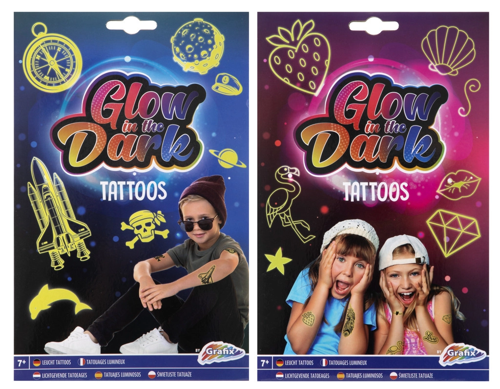 Čia rasite kūno piešimo flomasterius, spalvotus trafaretus, antspaudukus, blizgias tatuiruotes, tatuiruočių lipdukus ir pernešamus paveikslėlius – visa tai su akcentu į netoksišką sudėtį, nusiplaunamumą ir lengvą naudojimą. Laikini kūno dažai ir vaikiški tatuiruočių rinkiniai lengvai nusivalo vandeniu ir muilu, todėl eksperimentuoti su dizainais, užrašais ir motyvais visada be rūpesčių.
