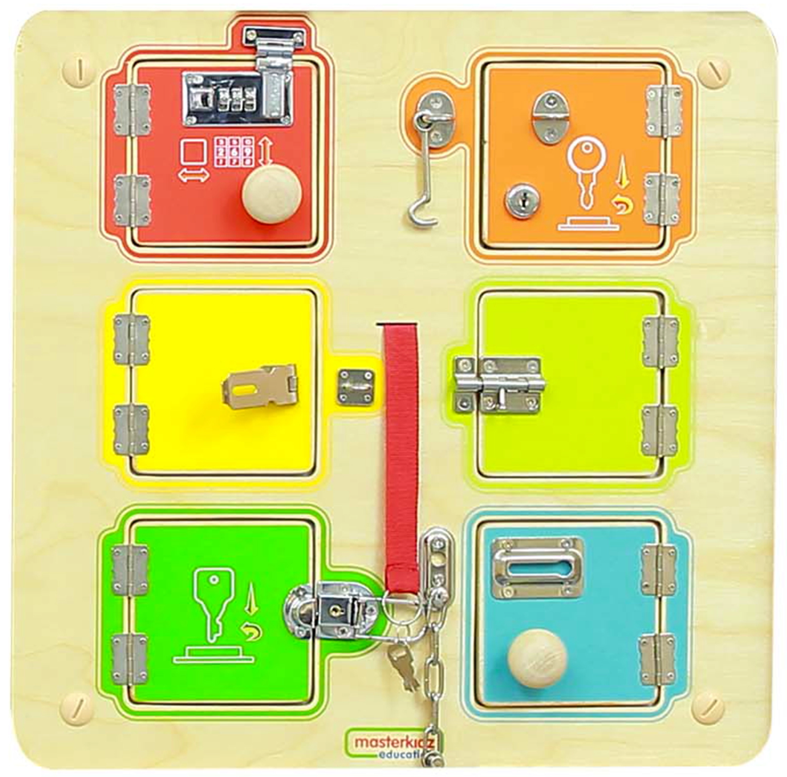 Kai mažosios rankytės trokšta atradimų, activity boardai yra tikras iššūkis. Mediniai activity boardai (busy board), motoriniai ir pojūčių (sensoriniai) skydai Montessori stiliumi priklauso prie mėgstamų medinių žaislų ir Montessori priemonių, kurios suteikia mokymąsi per žaidimą ir lavina smulkiąją motoriką, akių–rankų koordinaciją ir loginį mąstymą. Pagaminti iš kokybiškos medienos malonių spalvų, jie siūlo saugius dirgiklius mažyliams nuo 1 iki 3 metų.