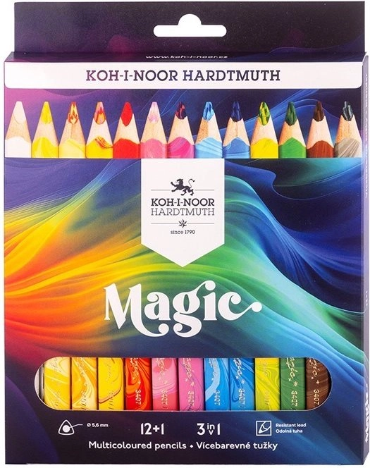 KOH-I-NOOR Magic pieštukai idealiai tinka kūrybiniam piešimui, šešėliavimui ir šrafavimui. Dėl unikalios šerdies jie kuria daugiaspalves linijas, kurios sklandžiai pereina iš vieno atspalvio į kitą, suteikdamos piešiniams plastišką 3D išvaizdą. Trikampė ergonominė forma užtikrina patogų suėmimą ir geresnę kontrolę dirbant.