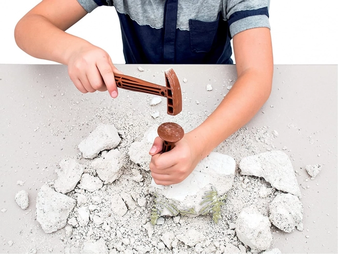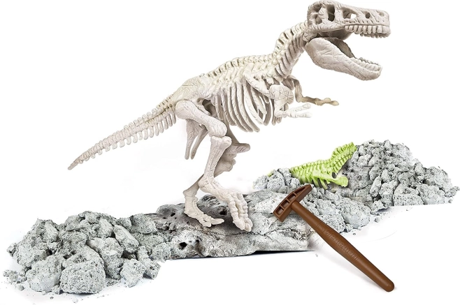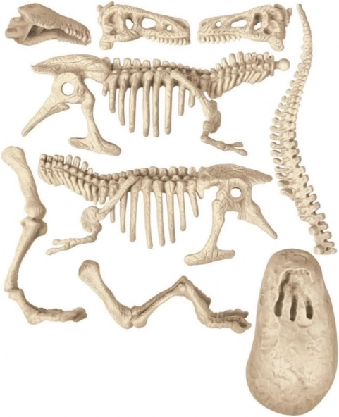 Naudodami pridėtą plaktuką ir kaltelį vaikai lavins smulkiąją motoriką ir kantrybę. Iliustruotas vadovas lietuvių kalba (ir kitomis kalbomis) žingsnis po žingsnio lydės nuo kasinėjimų iki realistinio skeleto modelio surinkimo.