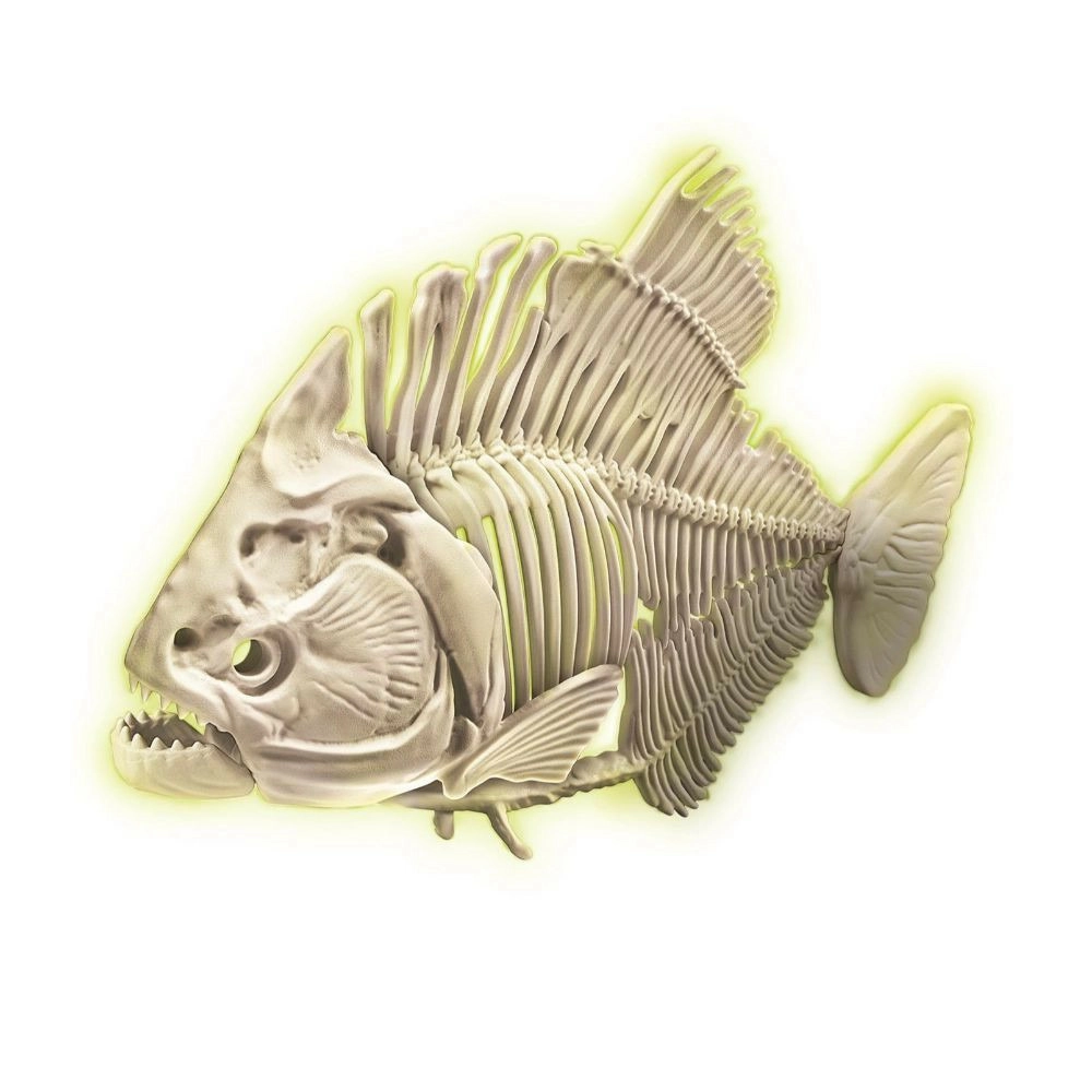 Atraskite paleontologijos pasaulį žingsnis po žingsnio. Naudodami plaktuką ir kaltą atsargiai apdirbkite žemės bloką ir atskleiskite kaulus, iš kurių surinksite realistiškus piranijos griaučius. Dėl specialios fluorescencinės medžiagos griaučiai po apšvietimo švies tamsoje, suteikdami atradimui išskirtinę atmosferą.