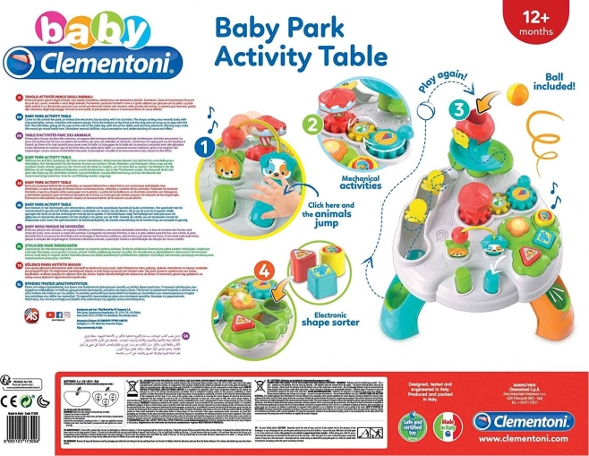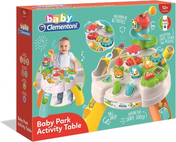 Stalas Activity Park sukurtas kaip mažas pramogų parkas, kuriame vaikai mokosi žaisdami. Sukant krumpliaračius įsuka karuselę, paspaudus mygtukus pajudinamos figūrėlės, o kamuoliukų trasa su nusileidimo takais baigiasi smagiu finišu stalo kojose. Spalvingi elementai, šviesos ir garsai traukia dėmesį ir skatina susikaupimą.