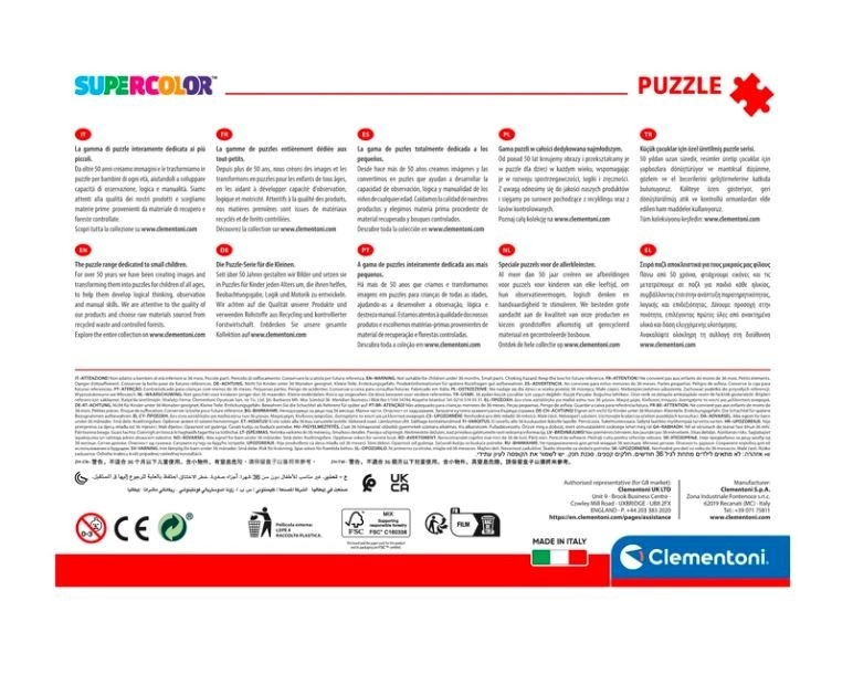 Vaikiška 104 dalių dėlionė su BARBIE motyvu ir originalia forma užtikrina smagų dėliojimą ir gražų rezultatą, kurio matmenys 48,5 × 33,5 cm. Aukštos kokybės spauda, specialūs paviršiaus efektai ir tiksliai išpjautos detalės iš perdirbtų medžiagų garantuoja puikią patirtį ir ilgaamžiškumą. Pagaminta Italijoje.
