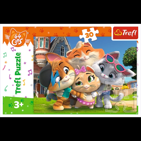 Dėlionė Draugystė kačių šalyje turi 30 dalių ir yra ideali visiems pasakos 44 katės gerbėjams. Sudėjus gaunamas paveikslas, kurio matmenys 27 x 20 cm. Pagaminta iš kokybiškų medžiagų, su specialiu šviesą atspindinčiu popieriumi, kuris palengvina dėliojimą.
