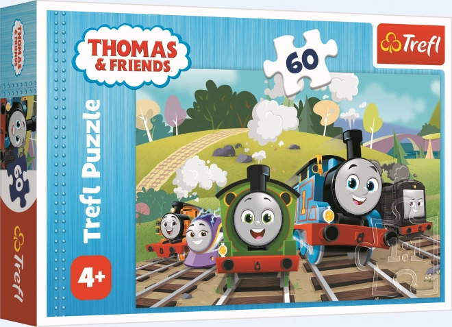 Vaikiška dėlionė su motyvu TOMAS IR DRAUGAI pristato paveikslą „Tomas išvykoje“, kurio matmenys 330 × 220 mm. Rinkinyje yra 60 dalių iš kokybiškų ir ekologiškų medžiagų, naudojamas kalandruotas popierius, mažinantis atspindžius patogiam dėliojimui. Pagaminta Lenkijoje prekės ženklo Trefl.