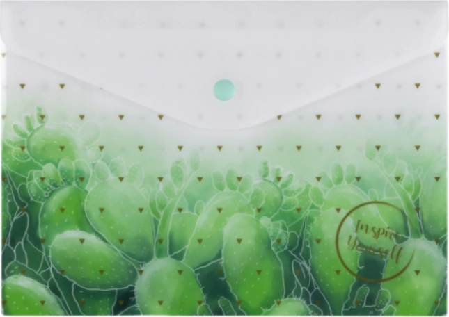 Elegantiškas vokelio formos aplankas idealiai tinka kasdienei A5 formato dokumentų tvarkai ir apsaugai. Dėl 200 mikronų tvirtumo ir patikimo užsegimo spaude jūsų popieriai apsaugoti nuo pažeidimų ir iškritimo. Šiuolaikinių motyvų mišinys suteikia gaivų įvaizdį ir ant stalo, ir krepšyje.