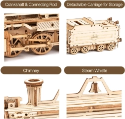 Šio traukinio modeliavimas lavina techninį mąstymą, vaizduotę, dėmesį detalėms ir smulkiąją motoriką. Saugios ir netoksiškos medžiagos užtikrina kokybę ir tinka tiek vaikams, tiek suaugusiesiems. Užbaigtas modelis puikiai tiks kaip interjero dekoracija. Ant pakuotės esantis QR kodas nukreips į vaizdo surinkimo gidą.
