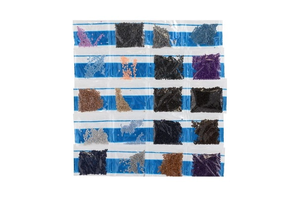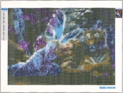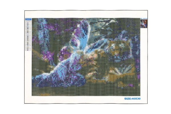 30 × 40 cm drobė turi aiškius simbolius ir patogią spalvų legendą tiksliam ir patogiam akmenėlių klijavimui.