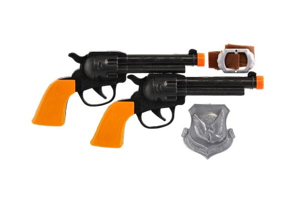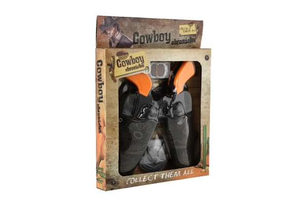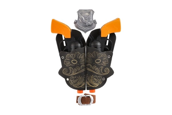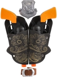 Kovbojaus gyvenimas traukia mažus nuotykių ieškotojus – su šiuo rinkiniu jų vakarietiškos istorijos taps ranka pasiekiamos. Du stilingi koltai juodai oranžinės spalvos derinio, dekoratyvūs dėklai ir šerifo žvaigždė sukuria tobulą kostiumą karnavalui, vakarėliui ir kasdieniam žaidimui.