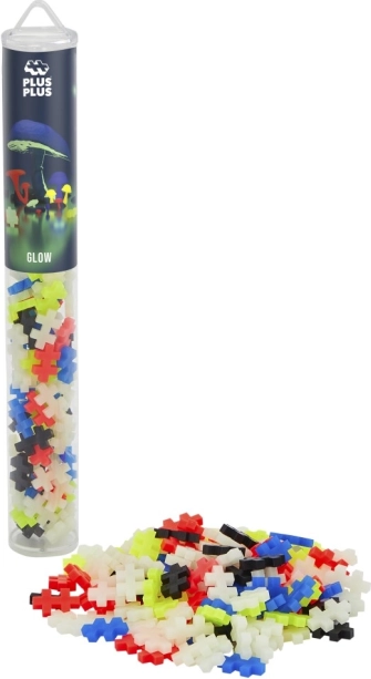 Kūrybinis rinkinys Plus-Plus Glow apima 100 detalių patrauklioje tūbelės pakuotėje, idealiai tinkančioje kelionėms. Kurkite savo dizainus su medžiagomis, kurios švyti tamsoje!