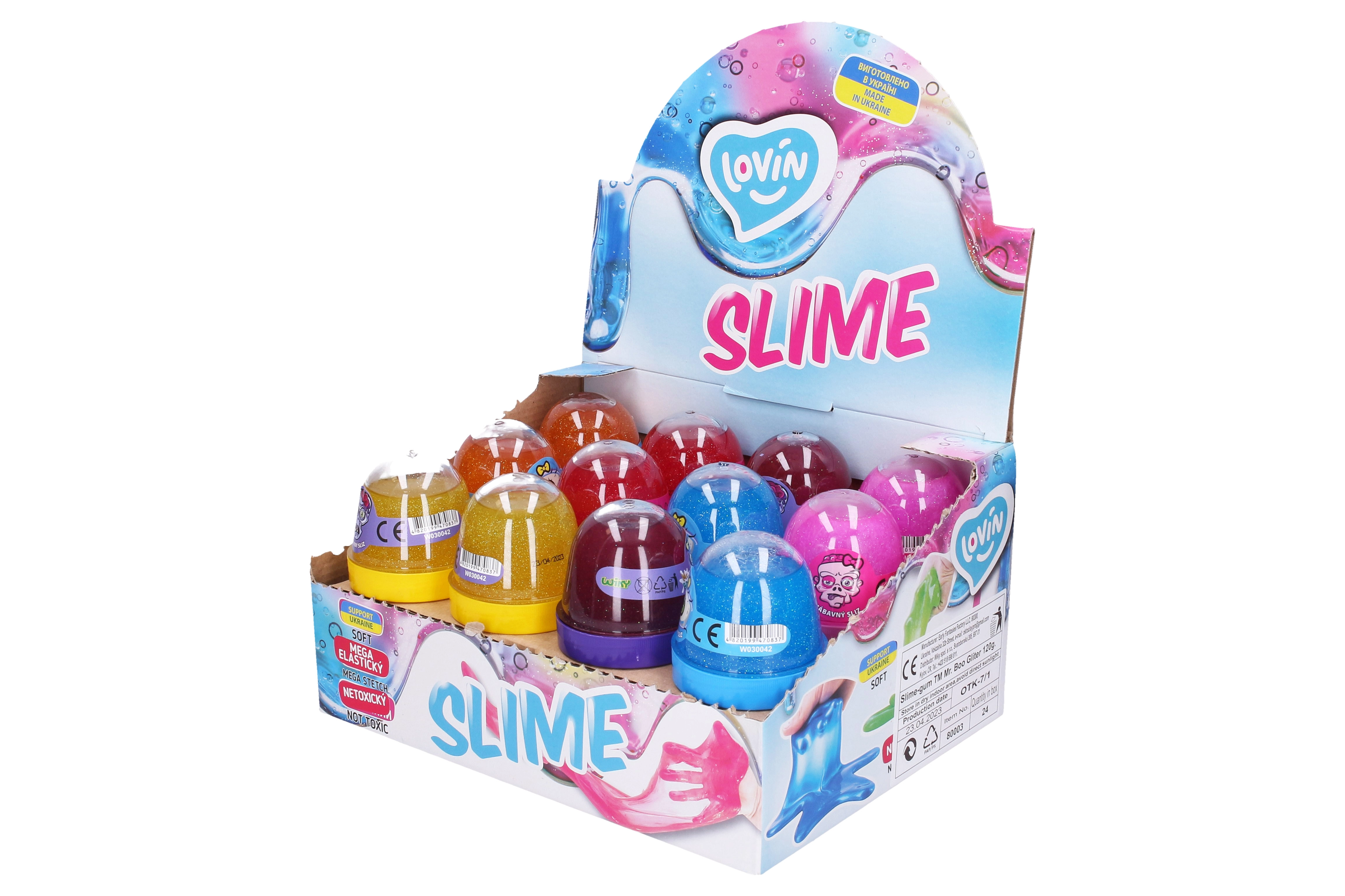 Mėgaukitės valandomis pramogų su Lovin formuojamomis blizgučių gleivėmis, kurios prieinamos šešių ryškių spalvų.