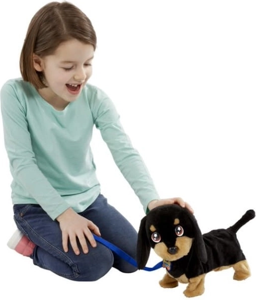 Į komplektą įeina mėlynas pavadėlis su identifikacine žyma, todėl vaikai gali mėgautis tikroviškais pasivaikščiojimais ir žaidimais su „tikru“ šuniuku.