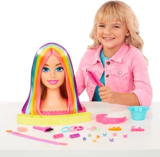 Ši BARBĖS stilizavimo galva su spalvotais sruogų atspalviais suteikia begalę šukuosenų galimybių ir žaismingų eksperimentų. Naudodamos kempinėlę ir vandenį, vaikai lengvai keičia sruogelių ar lūpų spalvą pagal temperatūrą – smagi magija, kuri žadina fantaziją ir nuolat atnaujina žaidimą.