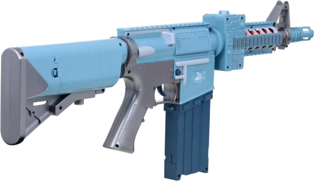 Elektrinį kompresorių maitina 5× AA baterijos (nepridedamos), jis užtikrina sklandų, visiškai automatinį šaudymą – tereikia paspausti gaiduką, ir kiekvienas paspaudimas iššauna vieną šūvį. Vaikų saugumui gaiduką galima užblokuoti ON/OFF jungikliu. Ilgas vamzdis su vedančiaisiais voleliais stabilizuoja šūvį tikslesniam pataikymui.