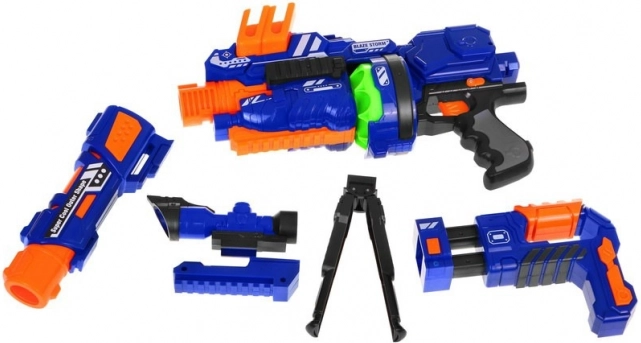 Modulinis vaikiškas šautuvas Blaze Storm suteikia dinamišką, bet saugų linksmą laiką namuose ir lauke. Elektrinis pusiau automatas su būgniniu mechanizmu ir dėtuvėle leidžia greitus pavienius šūvius ir trumpas serijas, o putų kamuoliukai yra minkšti ir švelnūs. Dėl priekinio taikiklio, stabilizatoriaus ir pailginamo vamzdžio vaikai gali mokytis tiksliai taikytis ir kurti įvairius žaidimo scenarijus.
