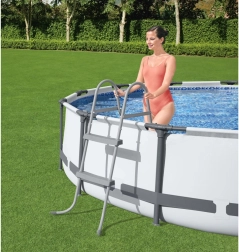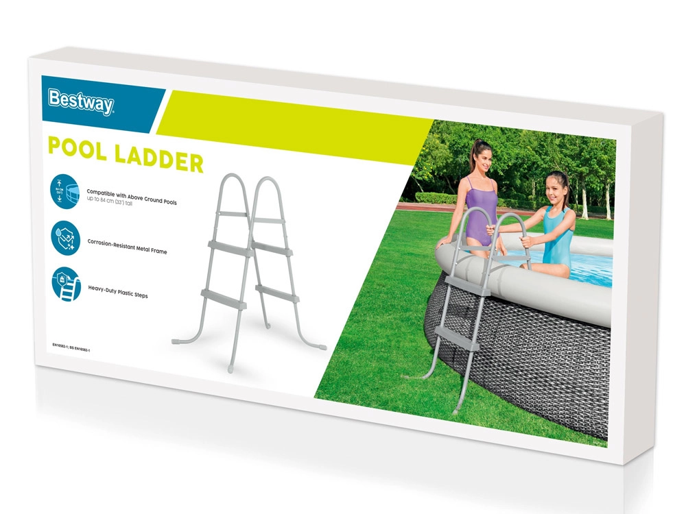 Saugios ir stabilios metalinės kopėčios į baseiną Bestway idealiai tinka antžeminiams baseinams, kurių aukštis iki 84 cm. Turi du neslystančius laiptelius, todėl įlipti į baseiną ir išlipti iš jo lengva ir patogu.
