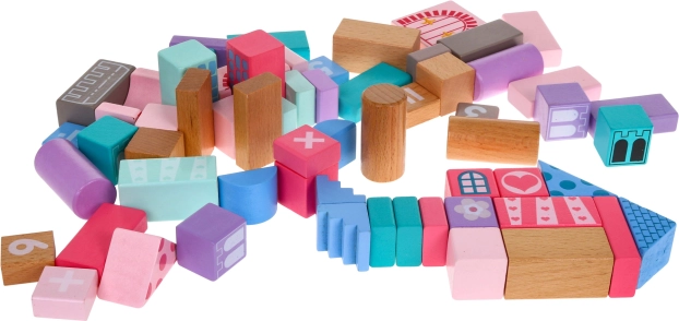 Medinis konstruktorių rinkinys, sukurtas atsižvelgiant į saugumą, susideda iš 67 įvairių elementų, suteikiančių ir pramogą, ir mokymąsi. Žaisdami vaikai gali mokytis formų, geometrinių figūrų ir lavinti loginį mąstymą. Kaladėlės supakuotos į kibirėlį su dangteliu, kuriame yra rūšiuoklis – į jį galima dėti atitinkamų formų kaladėles.