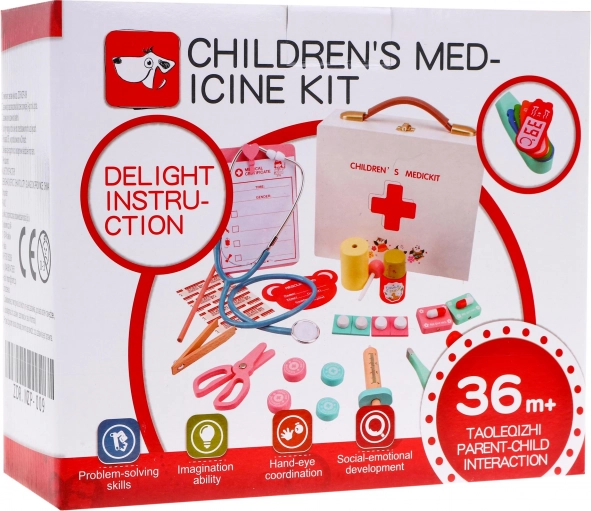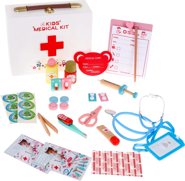 Ši medinė gydytojo rinkinys turi viską, ko mažajam gydytojui reikia savo pacientams pasirūpinti. Rinkinyje – 30 skirtingų dalių, savo formomis ir spalvomis imituojančių tikrus medicinos įrankius. Su šiuo rinkiniu vaikai ne tik įveikia baimę gydytojams, bet ir mėgaujasi vaizduote bei džiaugsmu kupinu žaidimu. Kiekvienas elemento draugiškas ir spalvingas dizainas užtikrina, kad jis trauks vaikus ir kvies tyrinėti.