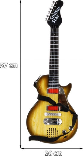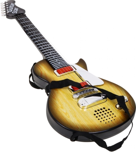Ši stilinga vaikiška gitara su medį imituojančiu dizainu – idealus pasirinkimas mažiesiems muzikantams. Dėl kompaktiškų matmenų puikiai tinka vaikams nuo 3 metų ir motyvuoja atrasti ritmą bei muzikinį kūrybiškumą. Gitara turi šešias metalines stygas, kurios skleidžia garsą jas palietus, ir siūlo du režimus – roko akompanimento grojimą ir grojimą stygomis.