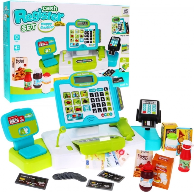 Kasos aparatas turi efektų turintį skaitytuvą ir svarstykles, kurios padeda vaikams įsitraukti į interaktyvų žaidimą ir apsipirkimo simuliaciją.