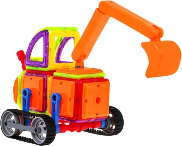 Magiški magnetiniai konstruktoriai – puikus pasirinkimas vaikams nuo trejų metų. Šis 78 dalių rinkinys yra spalvingas ir apima 29 magnetines detales, kurias galima laisvai jungti su plastikiniais elementais. Rinkinyje yra veikiantys ratai ir ekskavatoriaus strėlė, todėl galima surinkti statybinių mašinų modelius. Aiškus iliustruotas vadovas įkvepia vaikus kūrybinei statybai.