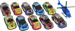 Komplekte yra 10 skirtingų spalvų automobiliukų ir policijos sraigtasparnis dar daugiau pramogų.