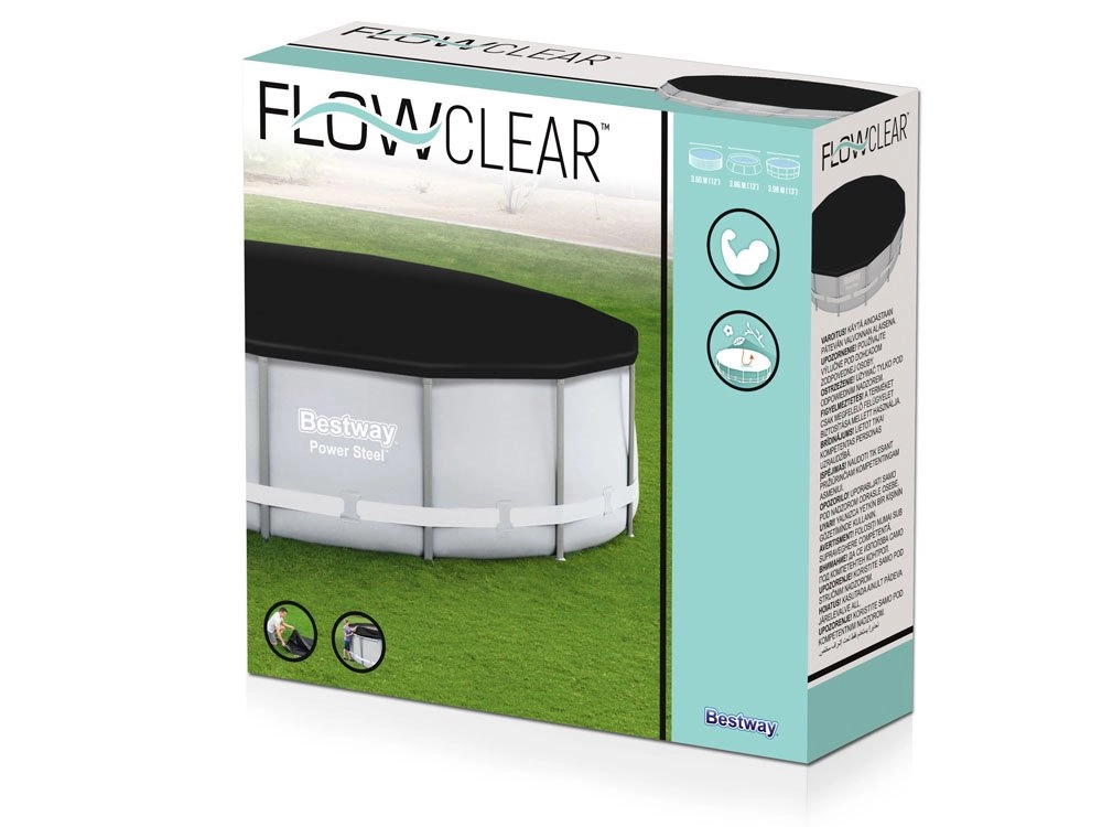 Bestway dengiamasis tentas yra idealus pasirinkimas bet kuriam baseinui, suteikia patikimą apsaugą ir lengvą priežiūrą. Dėl virvelių ir drenažo angų nereikia baimintis vėjo ar besikaupiančio vandens.