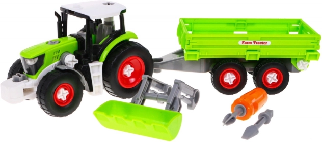 Šis puikus traktorius su priekaba skirtas vaikams nuo 3 metų. Traktoriaus surinkimas ir išardymas naudojant grąžtą su dviem keičiamais antgaliais suteikia begalę pramogų ir lavina smulkiąją motoriką. Vaikai gali žaisti mažais mechanikais, o tai stiprina jų kūrybiškumą ir pažintinius gebėjimus.