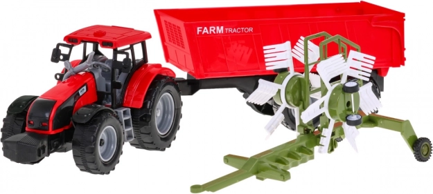 - 3 dalių rinkinys: traktorius, išverčiama priekaba, šieno vartytuvas