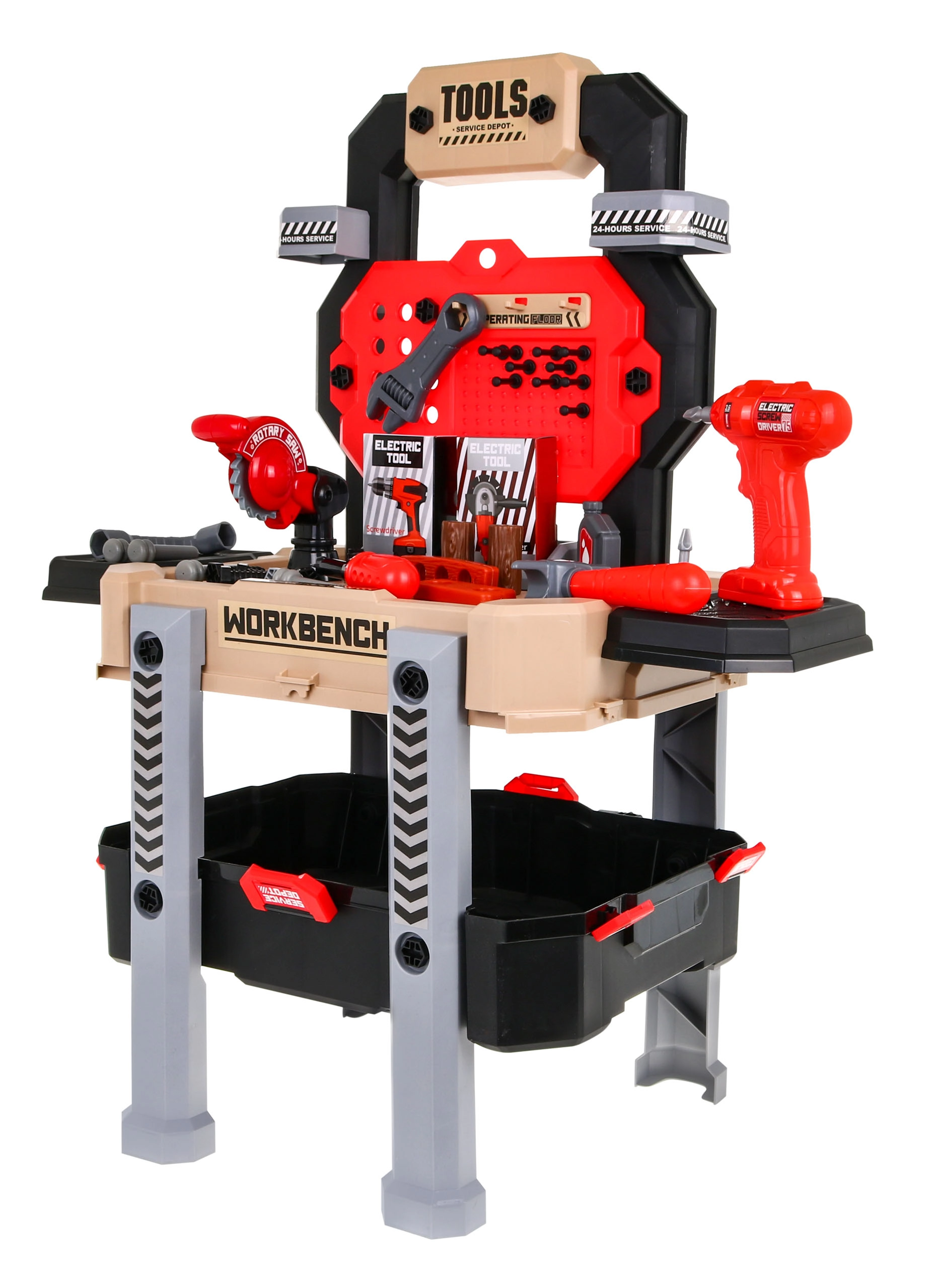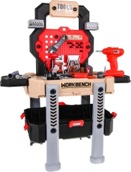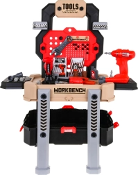 Šis realistiškas vaikiškas darbo suoliukas sujungia tvarkingą stovą su erdviu lagaminėliu, kad įrankiai visada būtų po ranka ir lengvai sutvarkomi. Dėka 78 elementų ir funkcionalaus gręžtuvo/atsuktuvo vaikai išbandys sukimo, pjovimo ir surinkimo darbus bei susipažins su pagrindiniais dirbtuvių darbo principais.