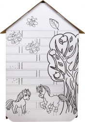 Bal tos sienos su juodais arklių kontūrais kviečia spalvinti pieštukais ar flomasteriais. Vaikai susikuria unikalią namelio išvaizdą ir lavina vaizduotę.