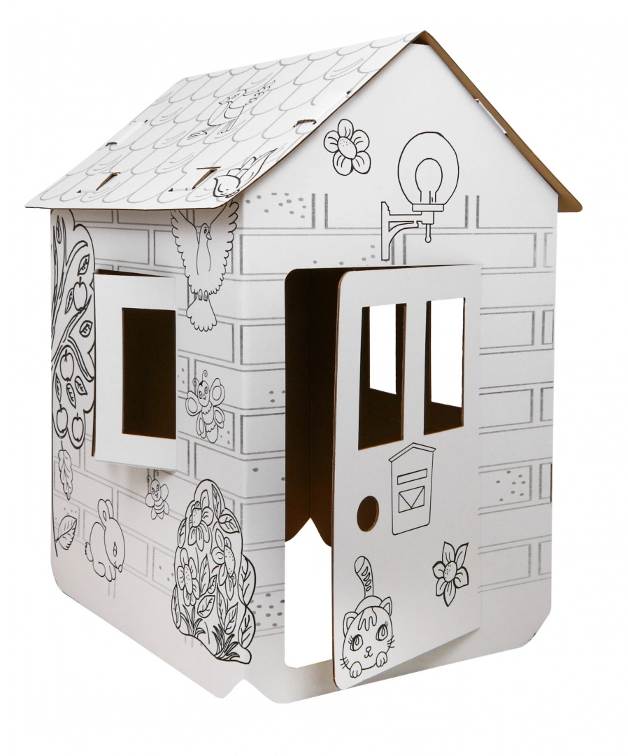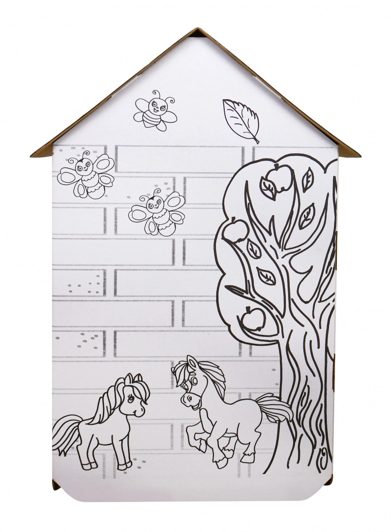 Didelis kartoninis spalvinamas namelis suteikia vaikams nuo 3 metų valandų kūrybiškų pramogų. Jame yra atidarymi langai ir durys, gyvūnų motyvai spalvinimui, o surenkamas lengvai ir be įrankių. Skatina kūrybiškumą, smulkiąją motoriką ir vaizduotę žaidžiant patalpose.