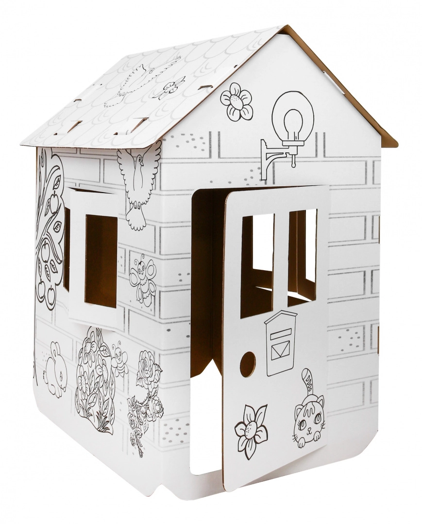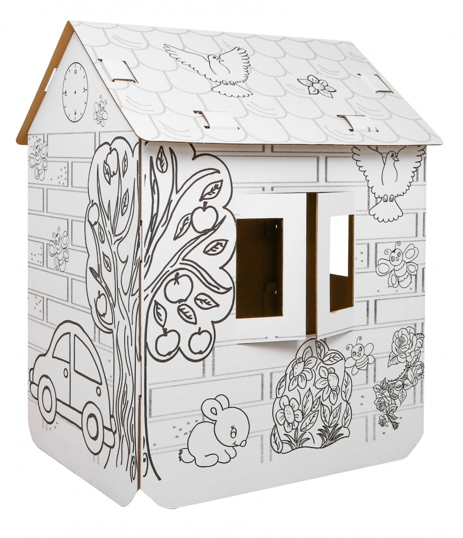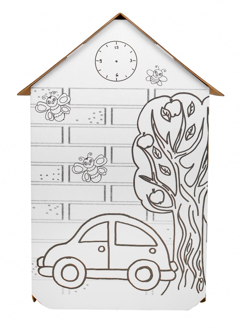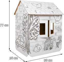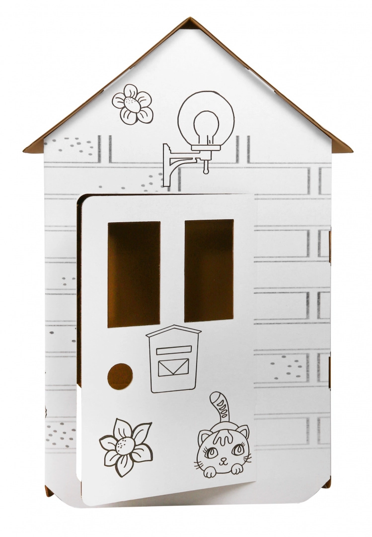 Didelis kartoninis namelis spalvinimui vaikams nuo 3 metų siūlo atidarinamus langus ir duris, daug pramogų ir kūrybiškumo ugdymą. Baltas paviršius su juodais kontūrais kviečia piešti ir dekoruoti, todėl vaikai susikurs savo originalų namelį ir mėgausis fantazijos kupinu žaidimu namuose ar darželyje.