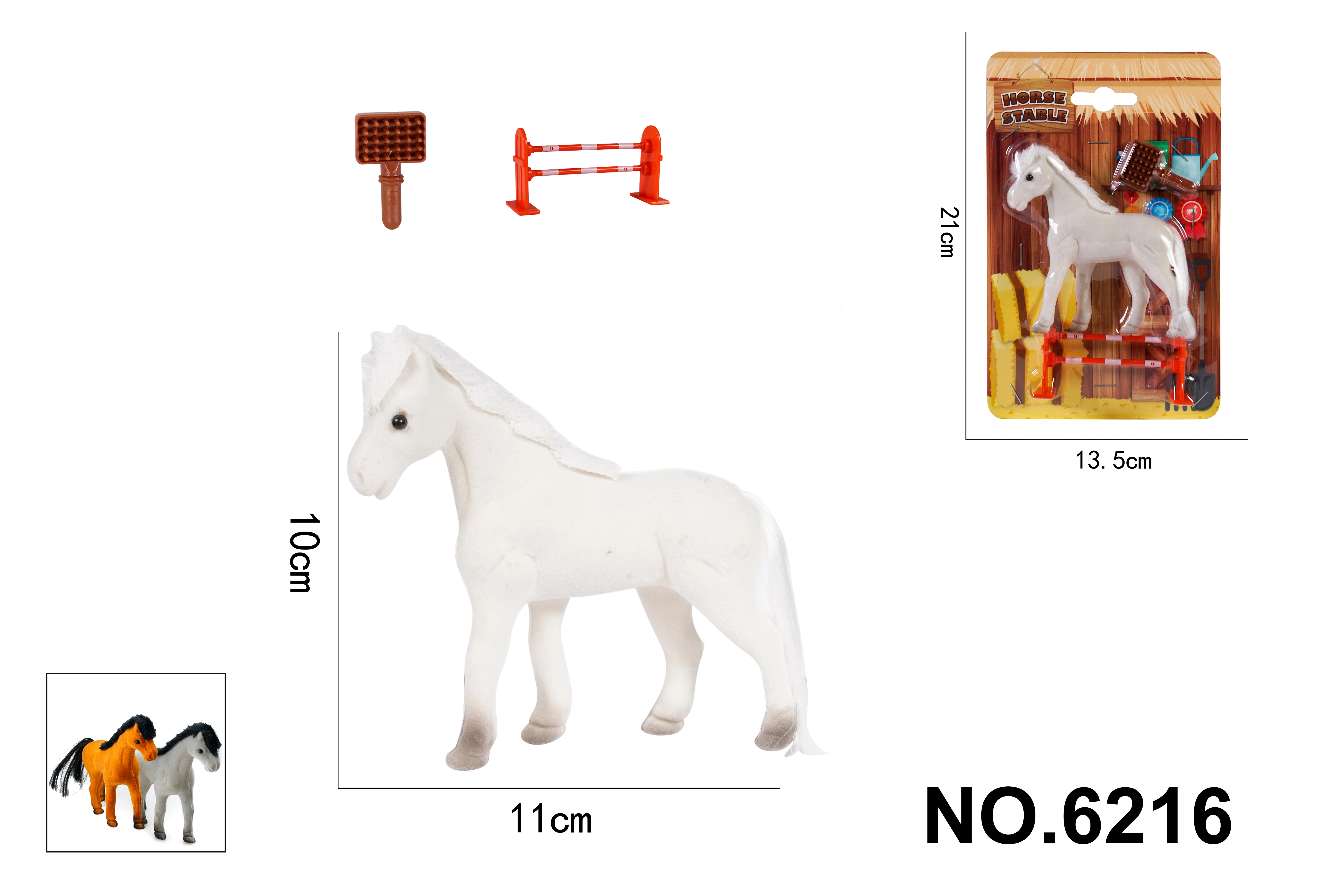 Rinkinyje yra žirgas, šepetys ir kliūtis, todėl galima kurti nesibaigiančius žaidimų scenarijus.