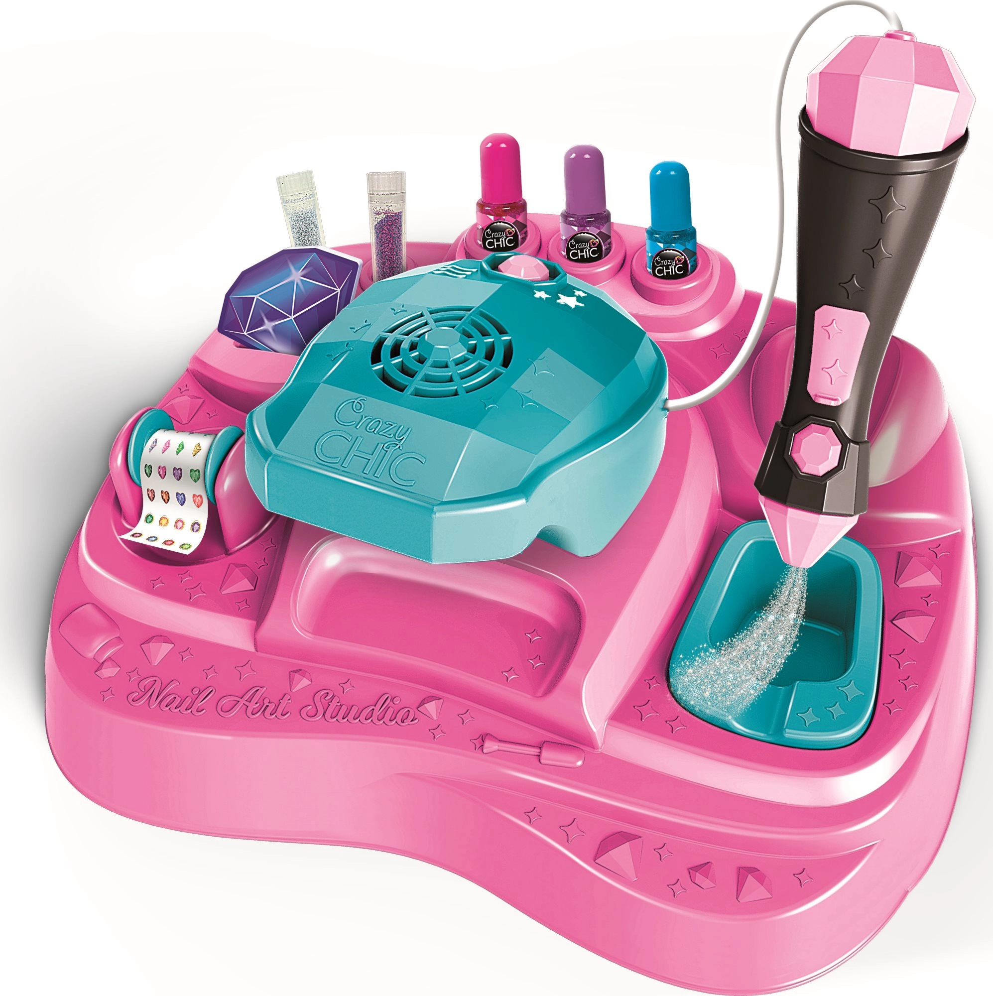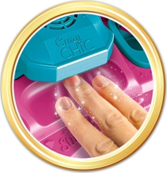 Paverskite manikiūrą pramoga su CRAZY CHIC nagų studija – modernia ergonomiška konsole mažosioms stilistėms. Integruotas blizgučių aplikatorius ir lako džiovintuvas užtikrina madingą išvaizdą pagal naujausias tendencijas. Rinkinyje rasite CRAZY CHIC lakus, nagų lipdukus ir spalvotų blizgučių pudrą. Žaislas lavina kūrybiškumą ir smulkiąją motoriką ir buvo sukurtas bei išvystytas Italijoje.