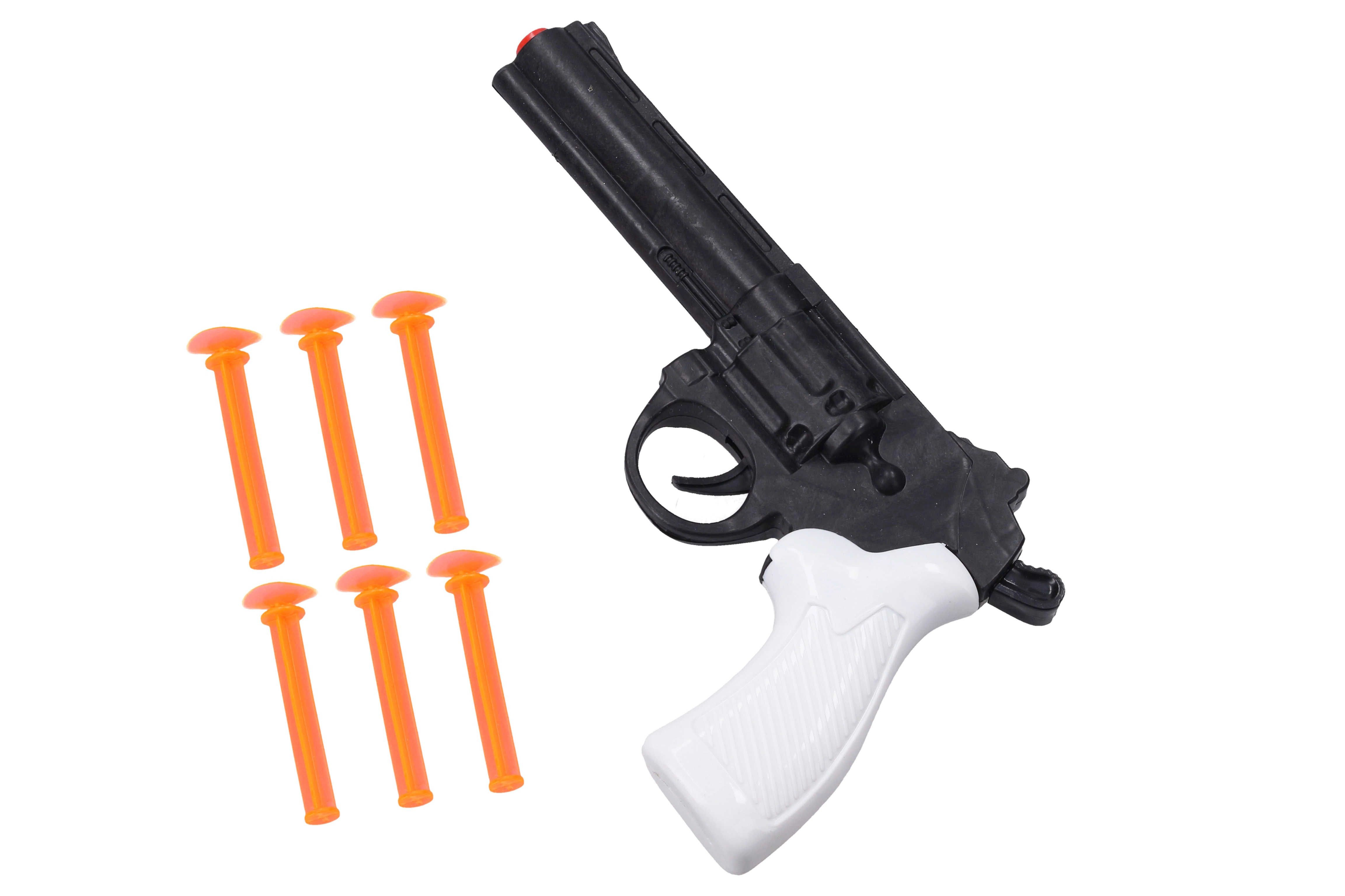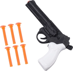 Smagus ir saugus pistoleto rinkinys mažiesiems šauliams. Dėl minkštų strėlių su siurbtukais vaikai gali treniruoti taiklumą į taikinį arba ant lygių paviršių be sužeidimų rizikos. Pistoletas pagamintas iš aukštos kokybės, sveikatai nekenksmingo plastiko, atsparaus pažeidimams, ir puikiai tinka vaiko rankai. Ideali dovana vaikams nuo 6 metų.