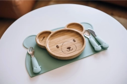 Mielos koalos formos bambukinė lėkštė su nuimamu siurbtuku užtikrina, kad ji tvirtai laikytųsi vietoje. Turi 3 skyrelius patogiam patiekimui, pagaminta iš 100% BPA neturinčio bambuko ir pasižymi lengva priežiūra.