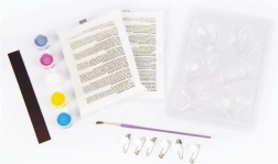 - Plastikinė forma su motyvais, dažai, teptukas, priedai magnetukams/segėms, instrukcija