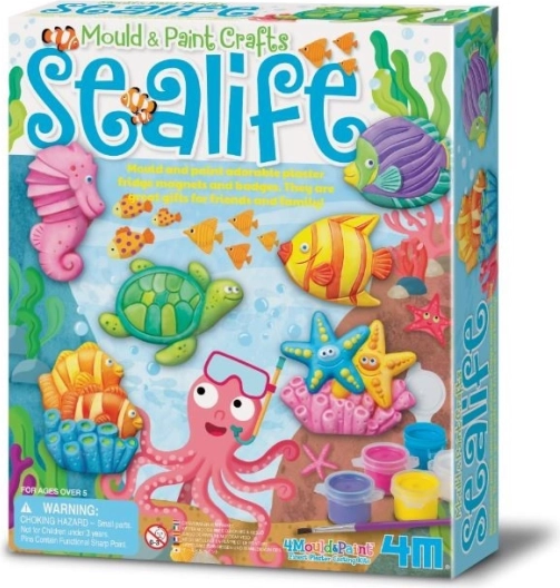 Atraskite kūrybišką pramogą vaikams ir suaugusiesiems: su liejimo ir dažymo rinkiniu pasigaminsite savo gipsinius jūrų gyvūnėlių atspaudus ir paversite juos spalvingais magnetukais arba puošniais ženkleliais. Rinkinyje yra viskas, ko reikia – formos, dažai ir teptukas – tereikia pridėti fantazijos.