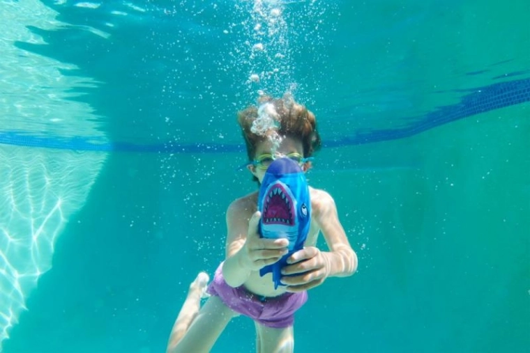 Dėl patrauklaus mėlynų atspalvių dizaino ir ryškaus „ryklio“ vaizdo vaikai žaislą akimirksniu pamils. Idealu grupiniams žaidimams baseine, perdavimams po vandeniu bei nuotolio ir tikslumo varžyboms. Be baterijų, be sudėtingos priežiūros – tik grynas vandens smagumas.