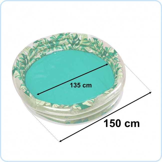 Šis gražus pripučiamas baseinas su žalių lapų grafika taps puikia jūsų sodo puošmena ir vieta nepamirštamiems jūsų vaiko žaidimams. Dėl savo matmenų – skersmuo 150 cm, vidinis skersmuo 135 cm – jis pakankamai erdvus keliems vaikams.