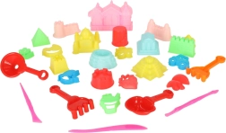 Spalvingas 28 dalių smėlio rinkinys suteikia viską, ko vaikams reikia smėlyne ar paplūdimyje: semtuvėlį, grėblį, modeliavimo lazdelės ir platų įvairių formelių pasirinkimą. Patvarus plastikas, lengvas naudojimas ir pramoga, lavinanti smulkiąją motoriką ir kūrybiškumą.