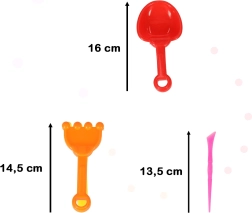 - Semtuvėlis: 16 cm; Grėblys: 14,5 cm; Modeliavimo lazdelė: 13,5 cm