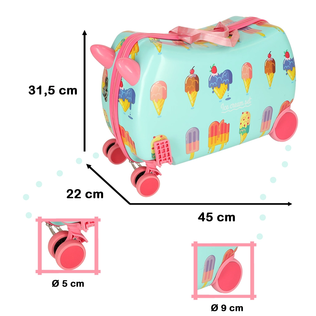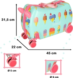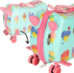 Šis vaikiškas kabininis lagaminas yra idealus palydovas atostogoms, išvykoms ir savaitgalio apsilankymams. Žaismingas ledų motyvas patraukia dėmesį iš pirmo žvilgsnio, o patvari plastikinė konstrukcija atlaiko kasdienes keliones. Vaikams jis patiks dėl galimybės atsisėsti ant lagamino ir pailsėti, o tėvai įvertins praktišką išdėstymą ir paprastą valdymą.
