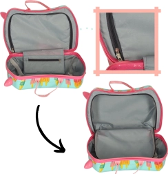 Ketur-i rožiniai ratukai ir tvirtos rankenos palengvina lagamino valdymą vaikams ir tėvams. Dviejų krypčių užtrauktukas paspartina pakavimą ir išpakavimą.