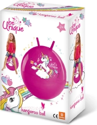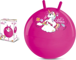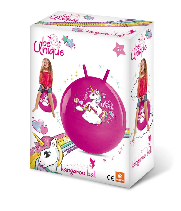 Suteikite vaikams valandų valandas aktyvaus džiaugsmo su šokinėjančiu kamuoliu su vienaragio motyvu. Dėl ergonomiškų rankenų kamuolį patogu laikyti, o šokinėti saugu net mažesniems vaikams. Kokybiška guminė medžiaga yra atspari dėvėjimuisi ir lengvai prižiūrima.
